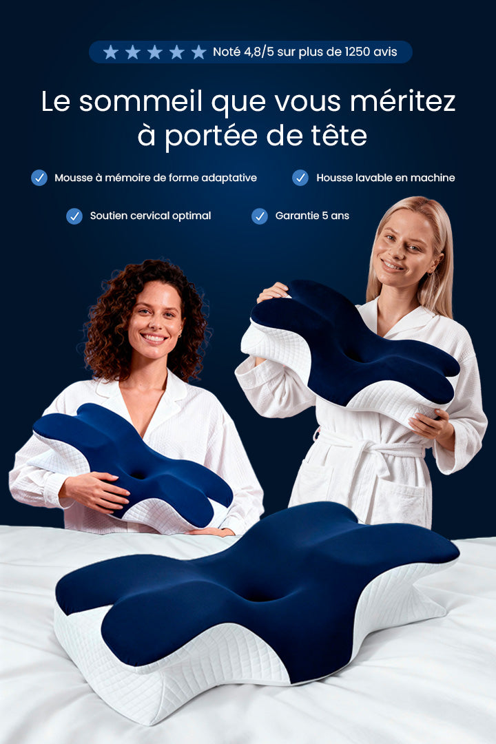 Maintien neutre de la nuque. Alignement parfait tête-rachis. Les douleurs diminuent dès la première semaine.